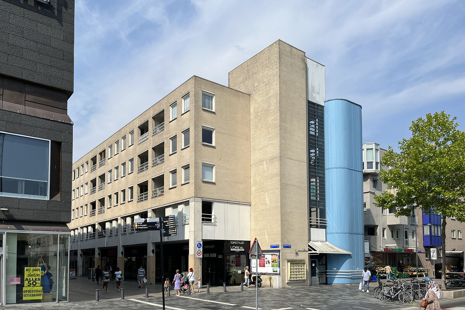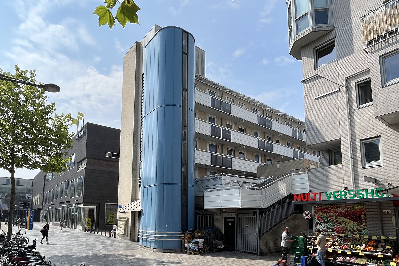 i. het vier/vijfde (4/5e) onverdeeld aandeel in de gemeenschap bestaande uit het gebouw omvattende bedrijfsruimten gelegen op de begane grond en zesendertig woningen gelegen op de eerste, tweede, derde en vierde verdieping en zesendertig bergingen gelegen op de eerste verdieping, plaatselijk bekend Stadhuisstraat 1 tot en met 15 (oneven nummers) en Bankiersbaan 250 tot en met 320 (even nummers) ten tijde van de hoofdsplitsing in appartementsrechten kadastraal bekend gemeente Almere, sectie K, nummer 2287, groot elf are negentig centiare (11a, 90ca); en