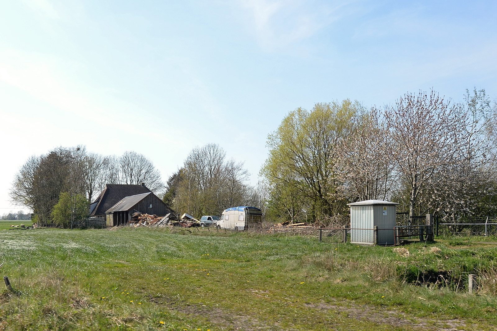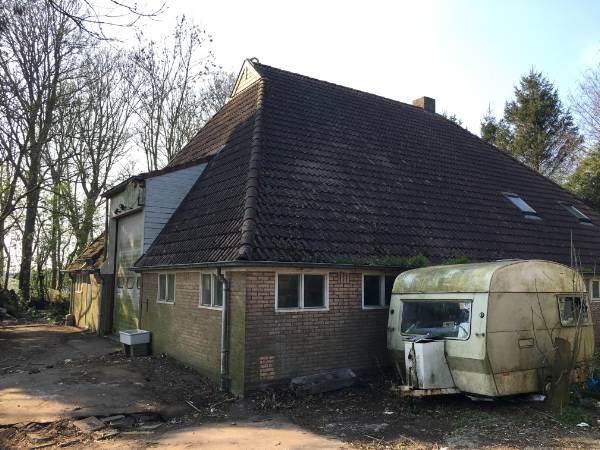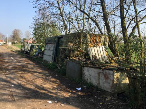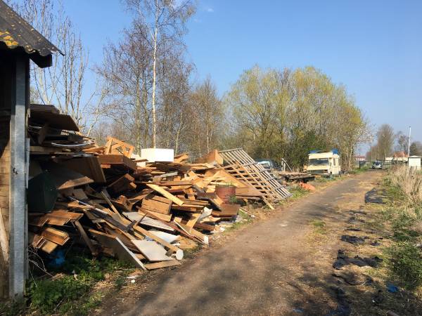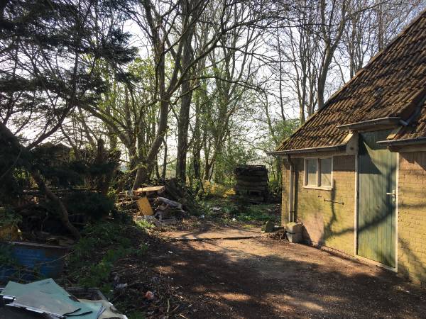 Op het erf zijn diverse goederen opgeslagen, waaronder auto's, aanhangwagens, een caravan en een camper. Het is op dit moment nog niet duidelijk of en wanneer deze zaken wordt weggehaald.