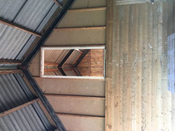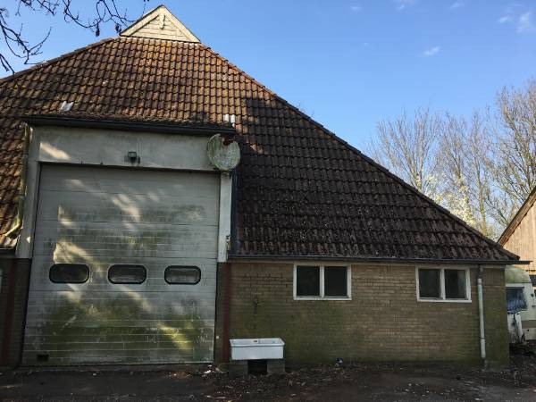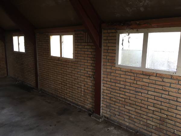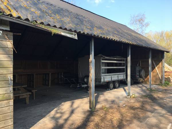 In de tuin staat nog een zeer ruime kapschuur. Er is ook een dicht gedeelte, goed bruikbaar als garage of stalling voor enkele auto’s.“